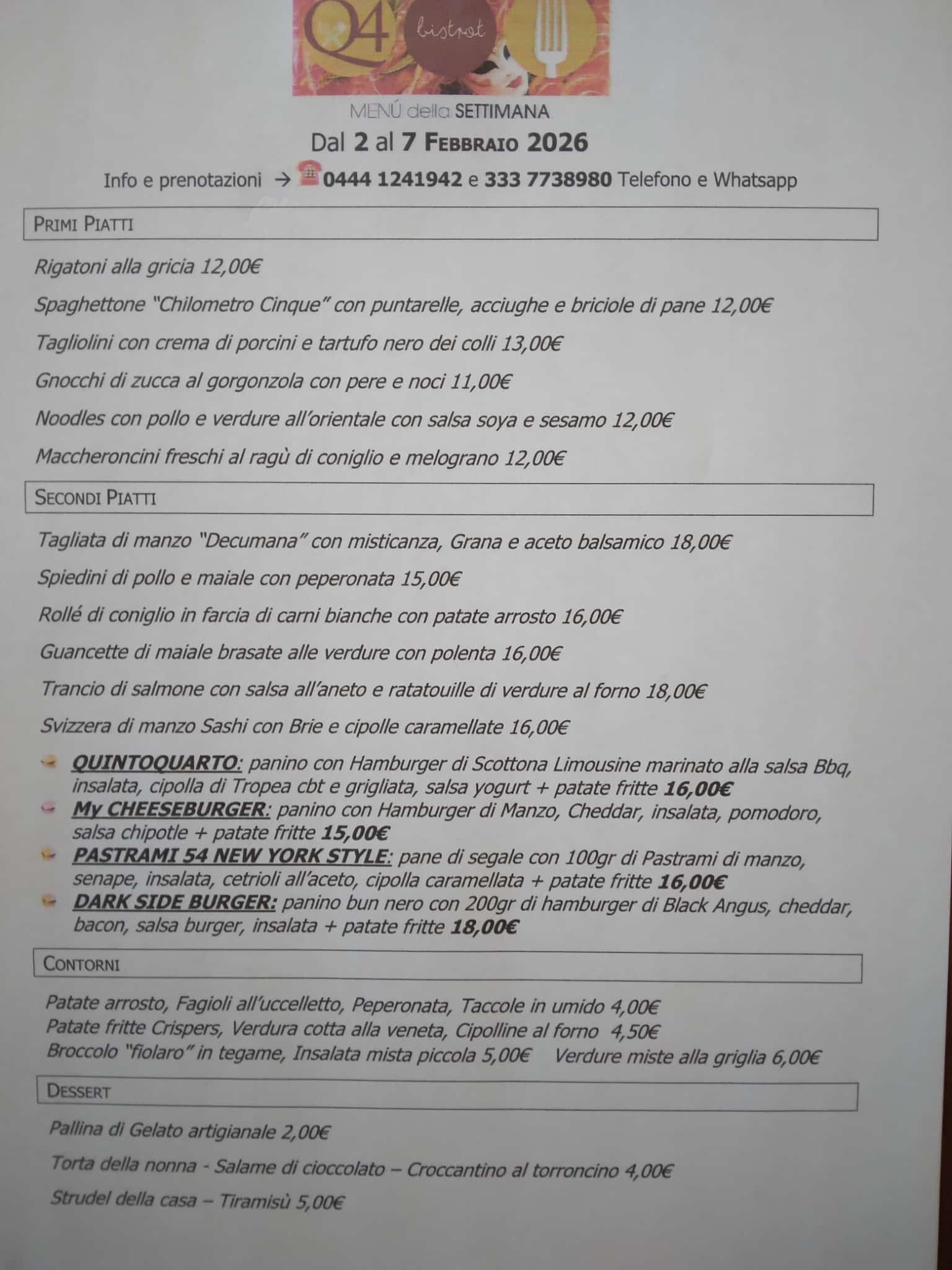 Non potrebbe essere altrimenti, visto che i primi clienti siamo noi stessi, i nostri amici e i nostri i figli. Da QuintoQuarto a Monteviale proponiamo una cucina che è al contempo tradizionale e molto innovativa, caratterizzata dall’alta qualità dei nostri ingredienti: dalle carni pregiate che provengono da tutto il mondo alle verdure del territorio, fino ai formaggi, le salse, la pasta e i ricchi primi piatti.